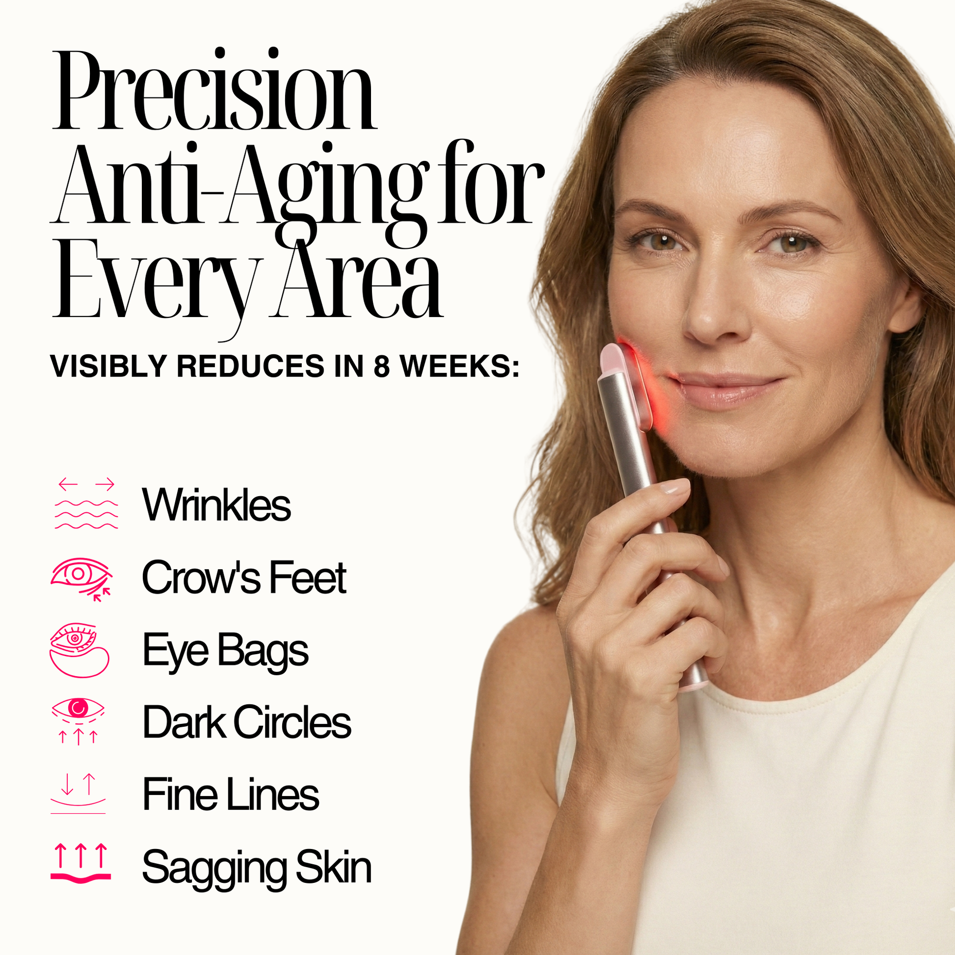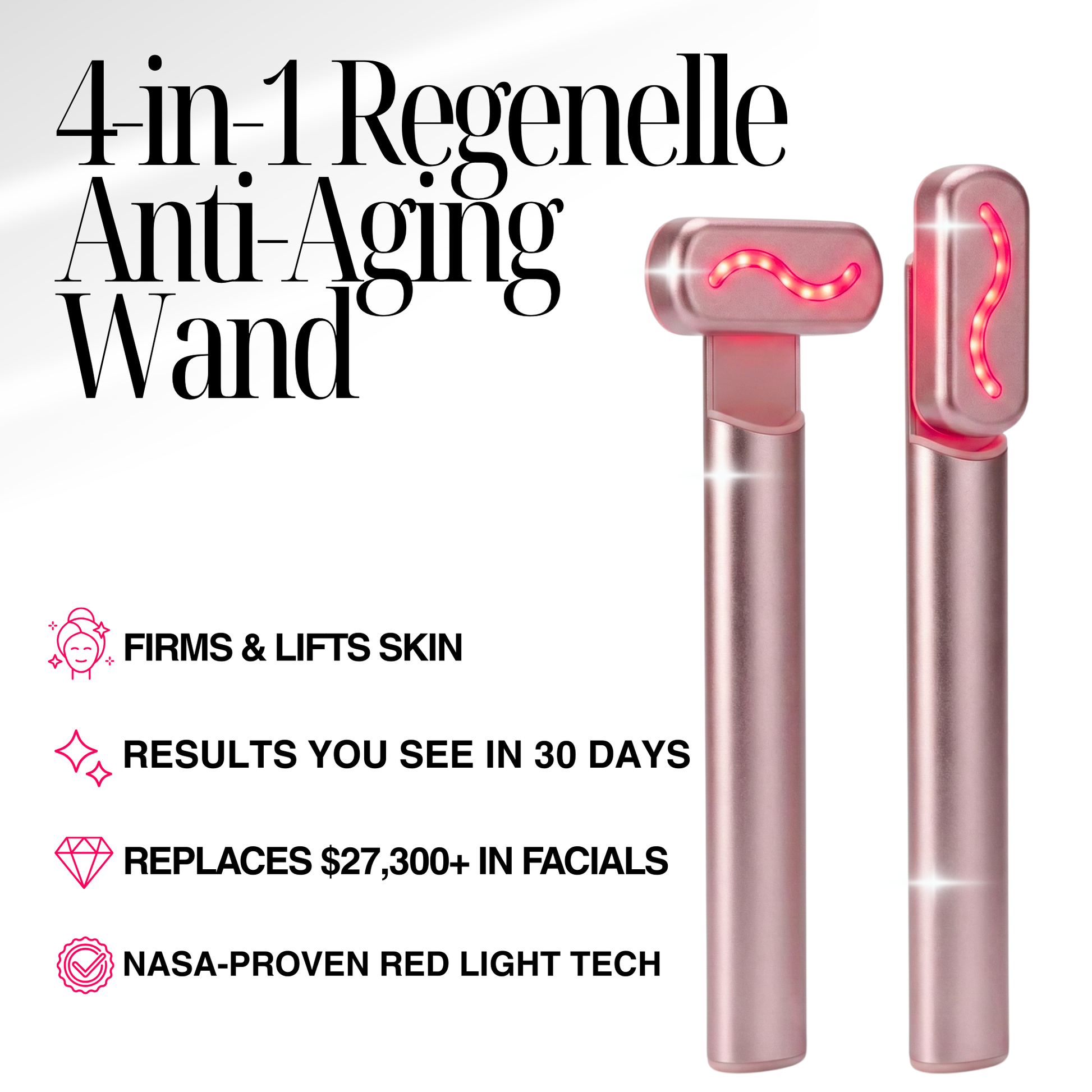 The Regenelle Wand was specifically designed to address the multiple concerns that come with aging: deep wrinkles, loss of firmness, sagging contours, uneven tone, and thinning skin texture.