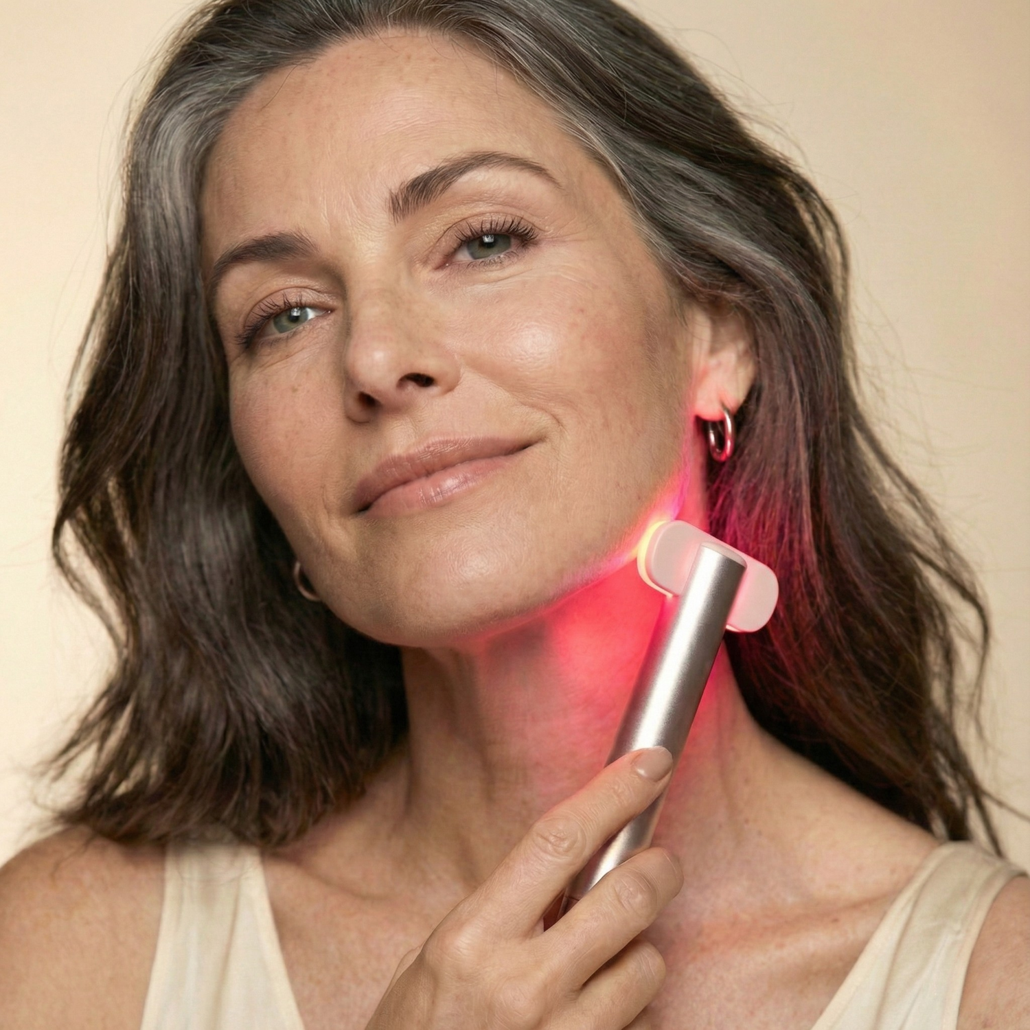 Loss of firmness can make skin appear less toned over time. Red LED light (640 nm) is commonly used in cosmetic skincare routines to help improve the appearance of skin firmness, texture, and overall skin quality.