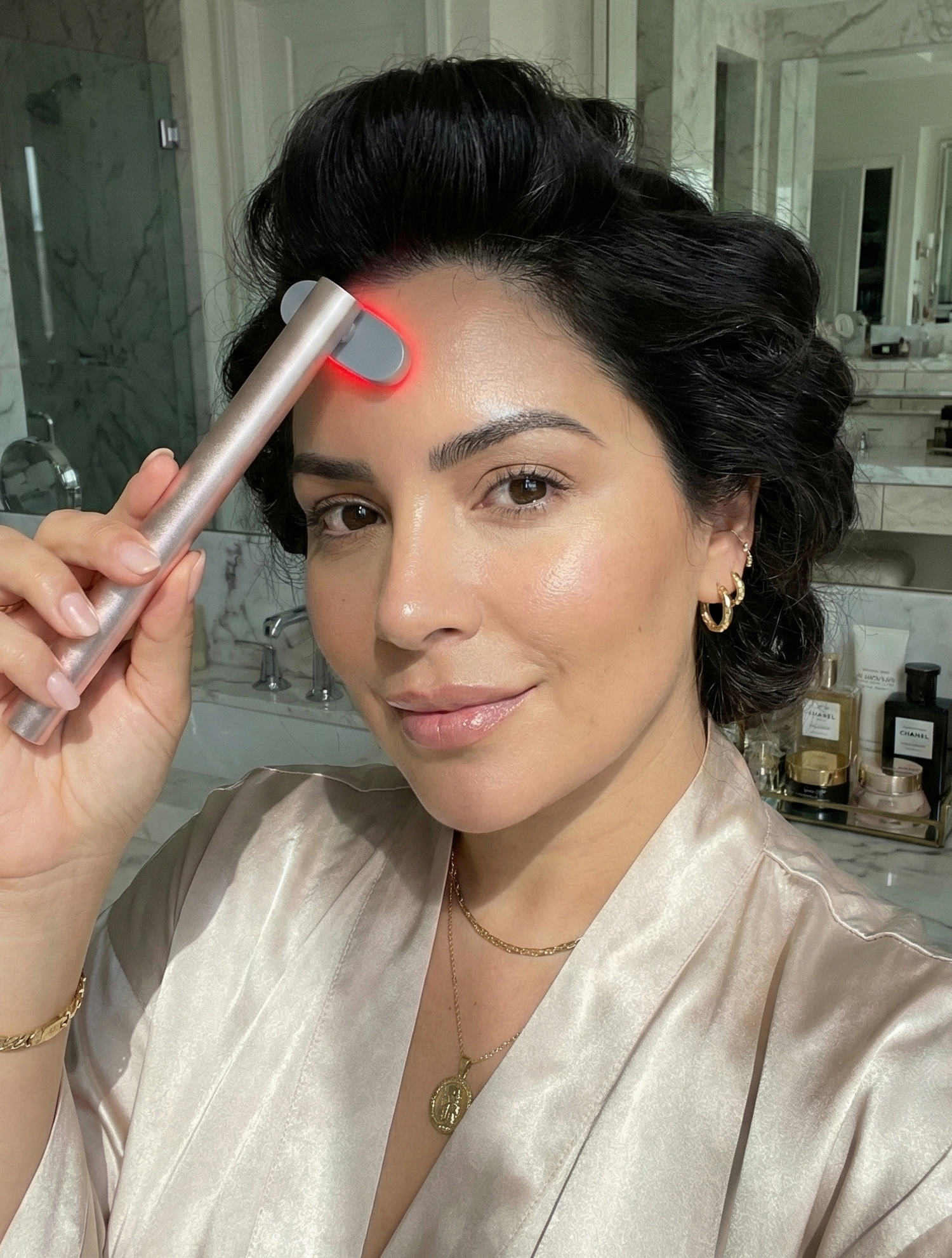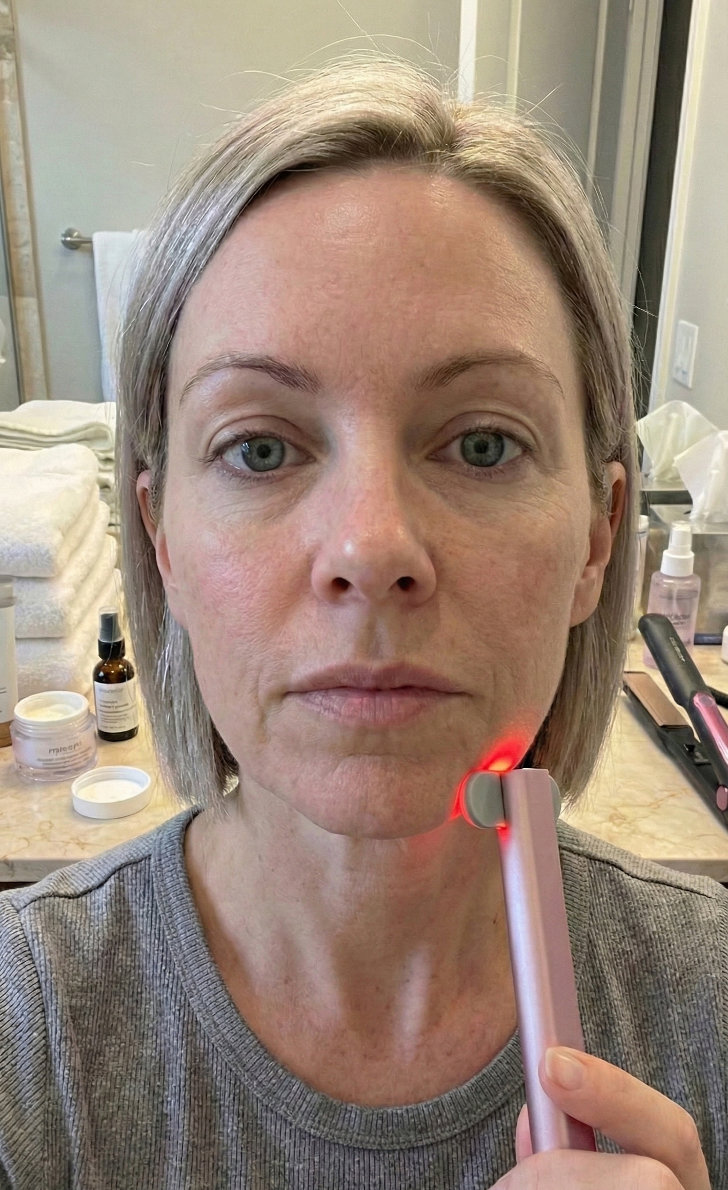The gentle warming effect combined with red light therapy may help calm reactive skin and support a more balanced, even-toned complexion over time.