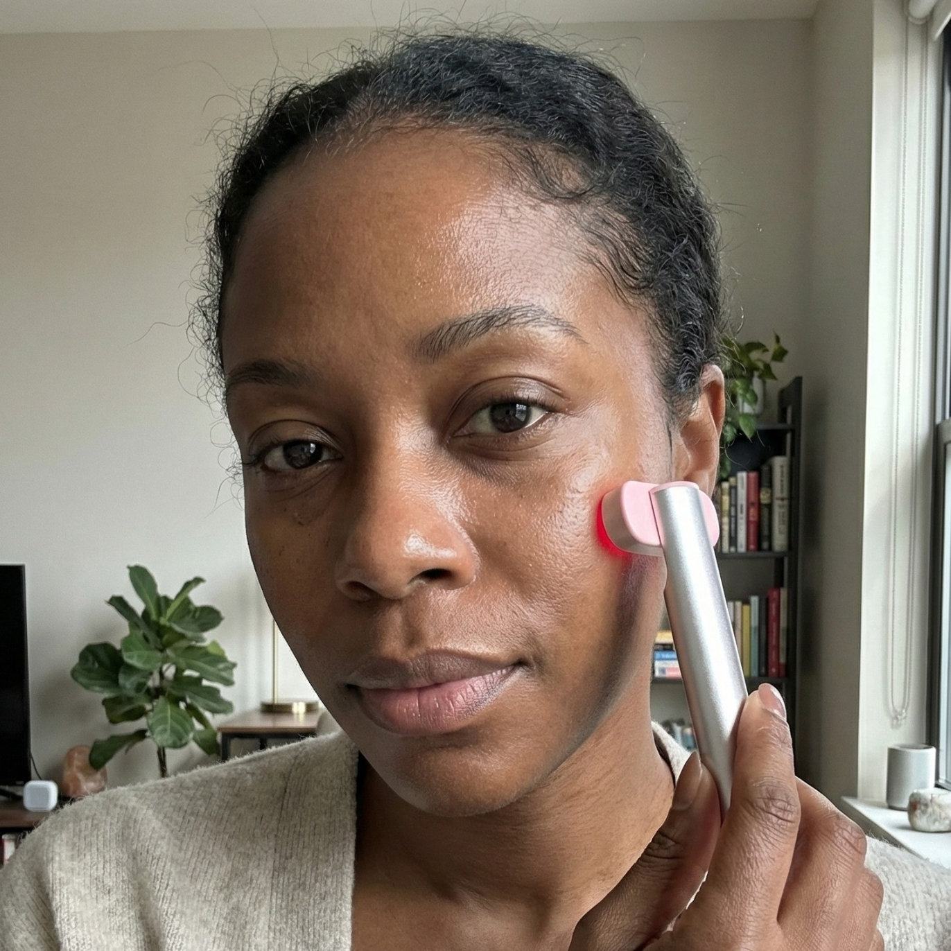 The gentle warming effect combined with red light therapy may help calm reactive skin and support a more balanced, even-toned complexion over time.